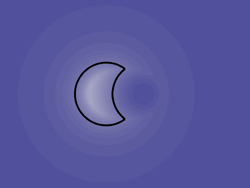 The "Mask disk" operation hasn't been introduced before so let's take a look at its effect next to a "Add disk". The contour line is the shape of a moon quarter: a disk eaten by another disk. More complex shapes like in the previous screenshot can be built by combining more disk actions.